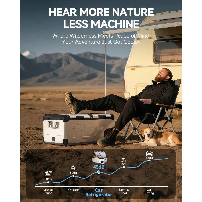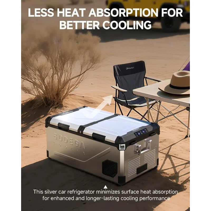 A "Geometric Brutalist" aluminum monolith designed to withstand extreme road vibration. Featuring dual-zone independent temperature control, it uses a high-efficiency compressor to maintain its "Systemic Soul" even in the harshest climates.